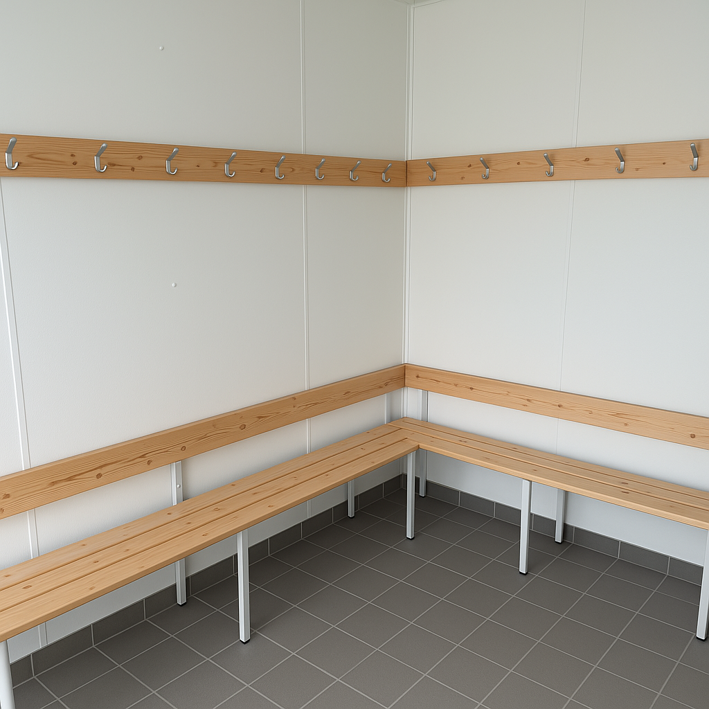 Nos vestiaires collectifs sont prêts à l’emploi et conformes aux normes belges. Cloisons séparées, bancs, casiers et douches sont disponibles.